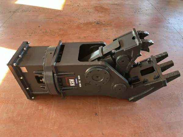 The KSM SC1000 is a high-performance hydraulic crushing gill with a hydraulic rotor, designed for excavators from 12 to 16 tonnes. This model is ideal for professional concrete, brick and structural crushing and reinforcement separation, ensuring high productivity even in the toughest demolition tasks.