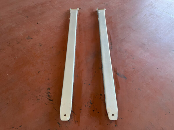Paletes dakšu pagarinātāji ļauj pagarināt esošo dakšu garumu no standarta garuma līdz vajadzīgajam. Cinkotie dakšu pagarinājumi ir izturīgi un ilgi kalpo, un tie ir lieliski saderīgi ar dažādu ražotāju dakšām un mašīnām.